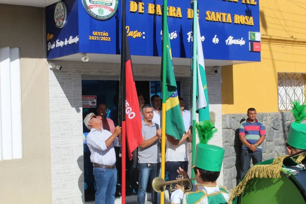 Nesta Segunda-feira 08 de Maio e aniversário de Barra de Santa Rosa, através de uma iniciativa do senhor presidente @edsonguedesmonteiro_ além do tradicional hasteamento na frente da Prefeitura Municipal, também foi realizado o mesmo hasteamento em forma de cerimonial em frente a Câmara Municipal com a presença de autoridades locais e a banda filarmônica município.